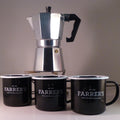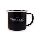 A proper grab-and-go mug for coffee, tea, camping, and everything in between. This Farrer's branded black enamel mug is lightweight, tough, and easy to clean — with a retro glossy finish that looks great on the shelf and holds heat well when you’re out and about. With a 360ml / 12.5oz capacity, it’s a handy daily mug and a solid little gift for any Farrer's fan.