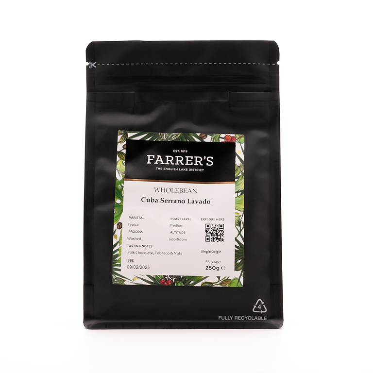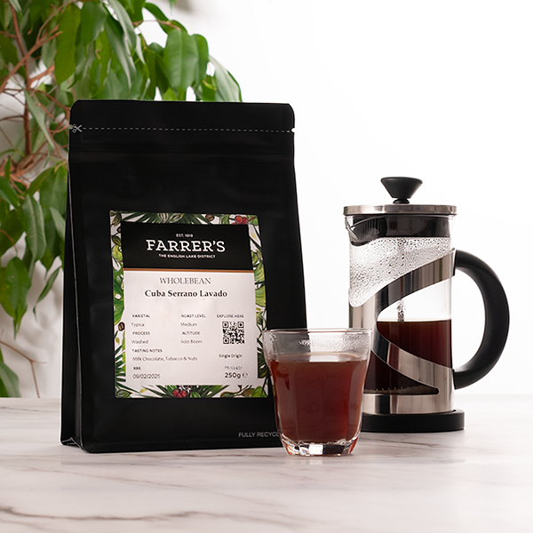 The master roasters at Farrers chose this coffee because of Cuba’s passion for elegant, rich, small batch coffees with unique flavour profiles. When this coffee is brewed flavours of tobacco and spices first appear before finishing with a nutty, biscuit sweetness and hints of chocolate. Ideal to be brewed using a cafetière and even served with a drop of milk if you so desire.