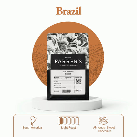 Our Brazil coffee offers a smooth, gently fruity profile with rich hazelnut notes, developed through sun drying at altitude. Bright, approachable and ideal for an easy, uplifting start to the day.